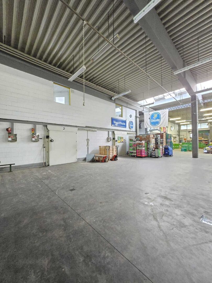 - Halle/Lagerfläche: ca. 400 m², ebenerdig, flexibel nutzbar - inklusive drei separate Kühlräume à ca. 35 m² für Lebensmittel, Getränke oder empfindliche Waren