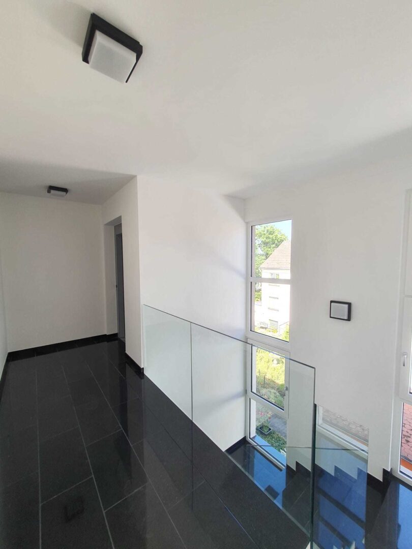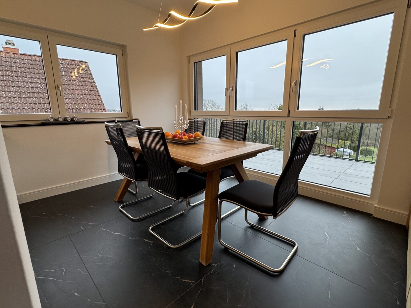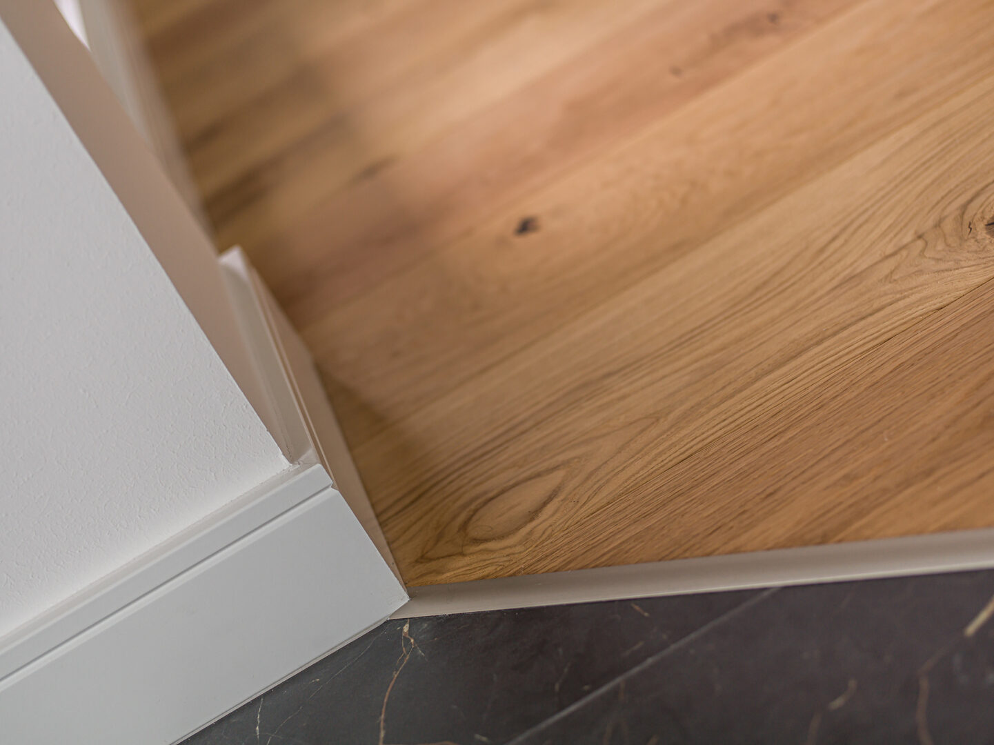 - Eichenholz-Dielenparkett: Hochwertiges Echtholzparkett sorgt für ein warmes, elegantes Wohngefühl.