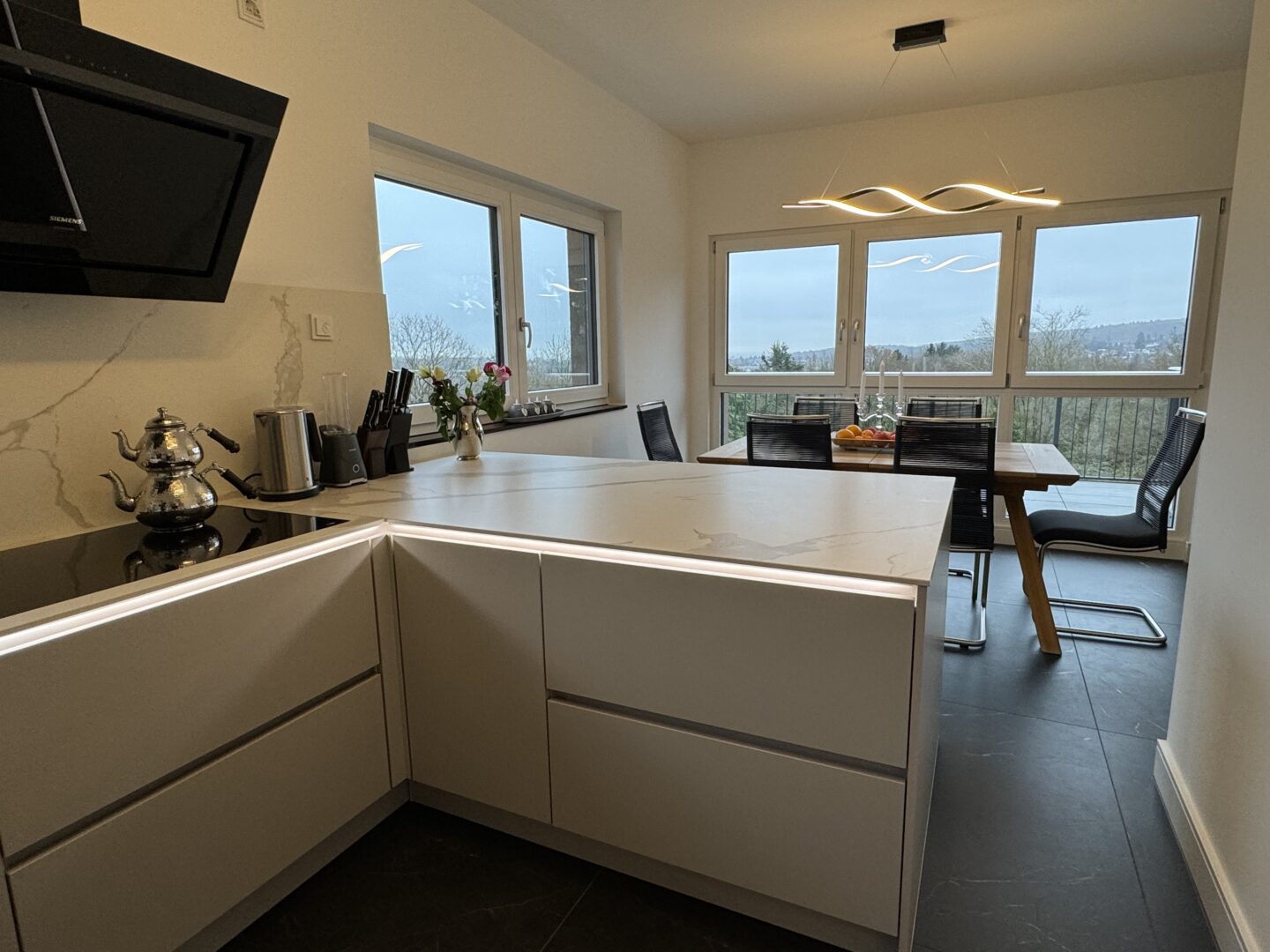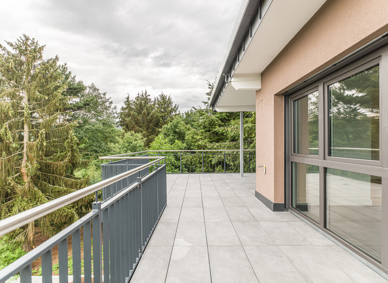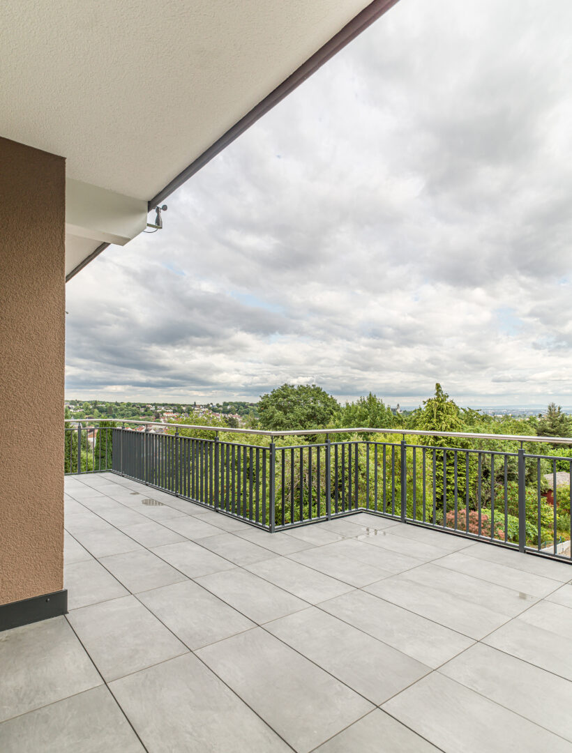 Die Penthouse-Wohnung begeistert mit einem spektakulären, vollkommen unverbaubaren Panoramablick. Die erhöhte Position sowie großzügige Fensterfronten lassen Innen- und Außenraum verschmelzen und schenken ein Wohngefühl voller Freiheit und Großzügigkeit.