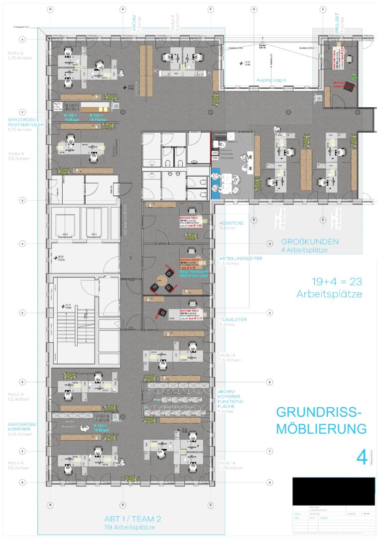 Die vermietbaren Flächen fangen ab ca. 520m² an und bieten den Mietinteressenten großzügige und gut geschnittene Büroräume. Die Räumlichkeiten haben viel Lichteinfluss und sind z.T. mit Klimaanlagen ausgerüstet.